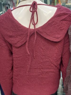 بلوز زنانه ویسکوز نخی یقه گیپوری طرح 2