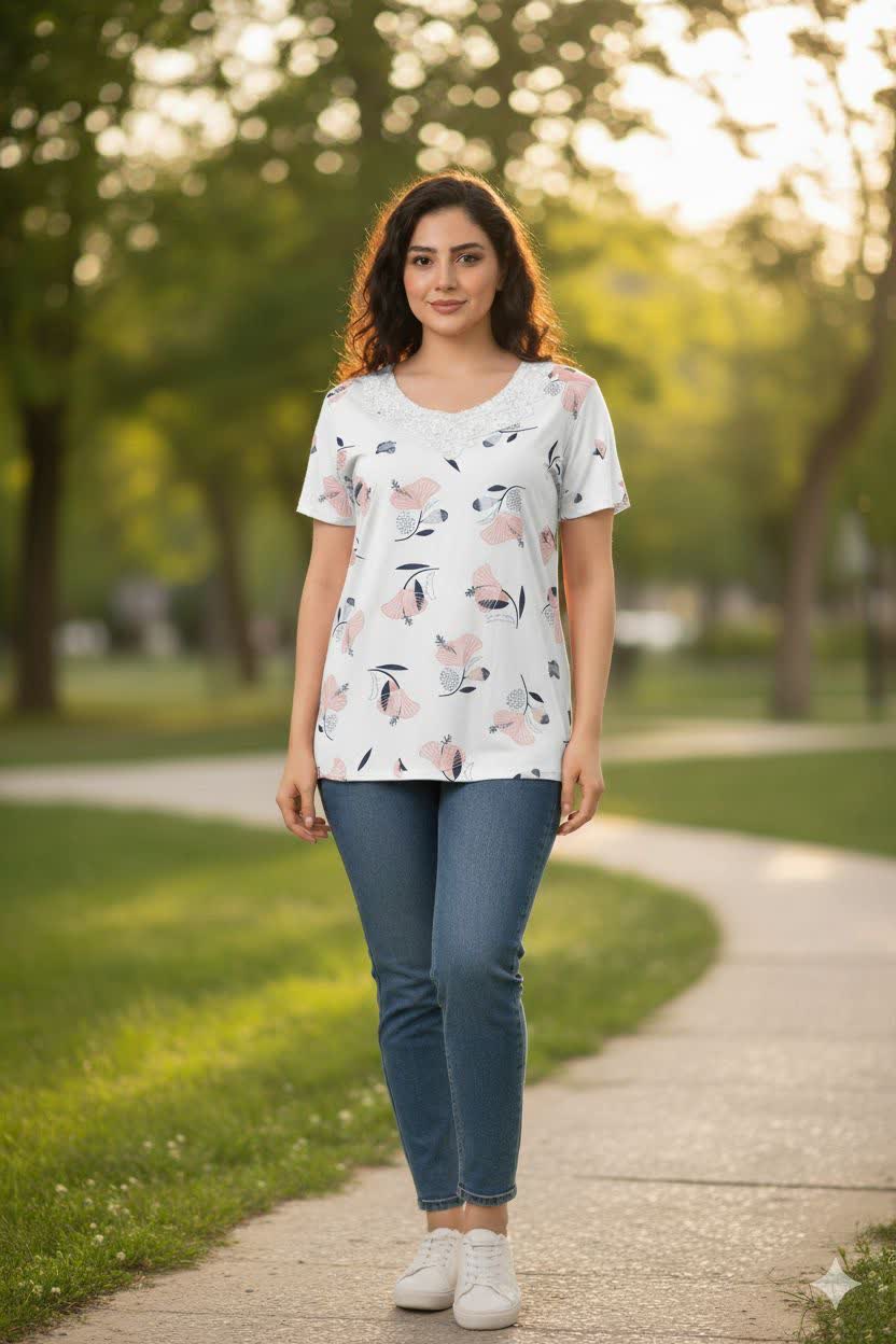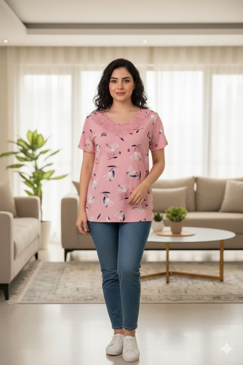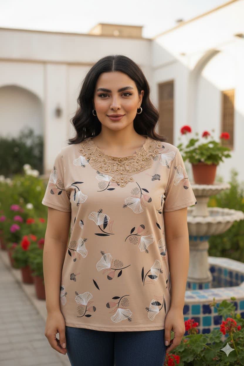 ما توی درگهان شاپ این بلوز رو مستقیماً از بازار چین آوردیم که هم قیمتش اقتصادیتر باشه، هم کیفیتش تضمینشده. اگه خرید حضوری برات سخته یا نمیخوای وقتتو تو بازار تلف کنی، با یه کلیک ساده این تیشرت نخ پنبه یقه گیپوری 4 رو دم در خونت تحویل بگیر.