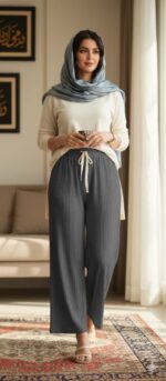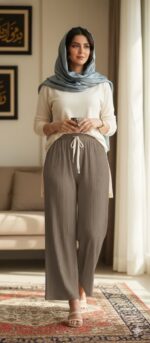 ین مدل از شلوار زنانه راحتی، برای استفاده در خانه، مهمانیهای دوستانه یا حتی استایل بیرون از منزل با مانتوی بلند و کفش تخت بسیار مناسب است. جنس پارچه، ضدچروک و خنک بوده و در چهار فصل قابل استفاده است