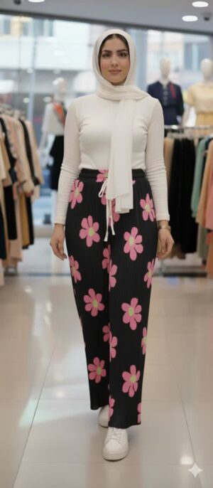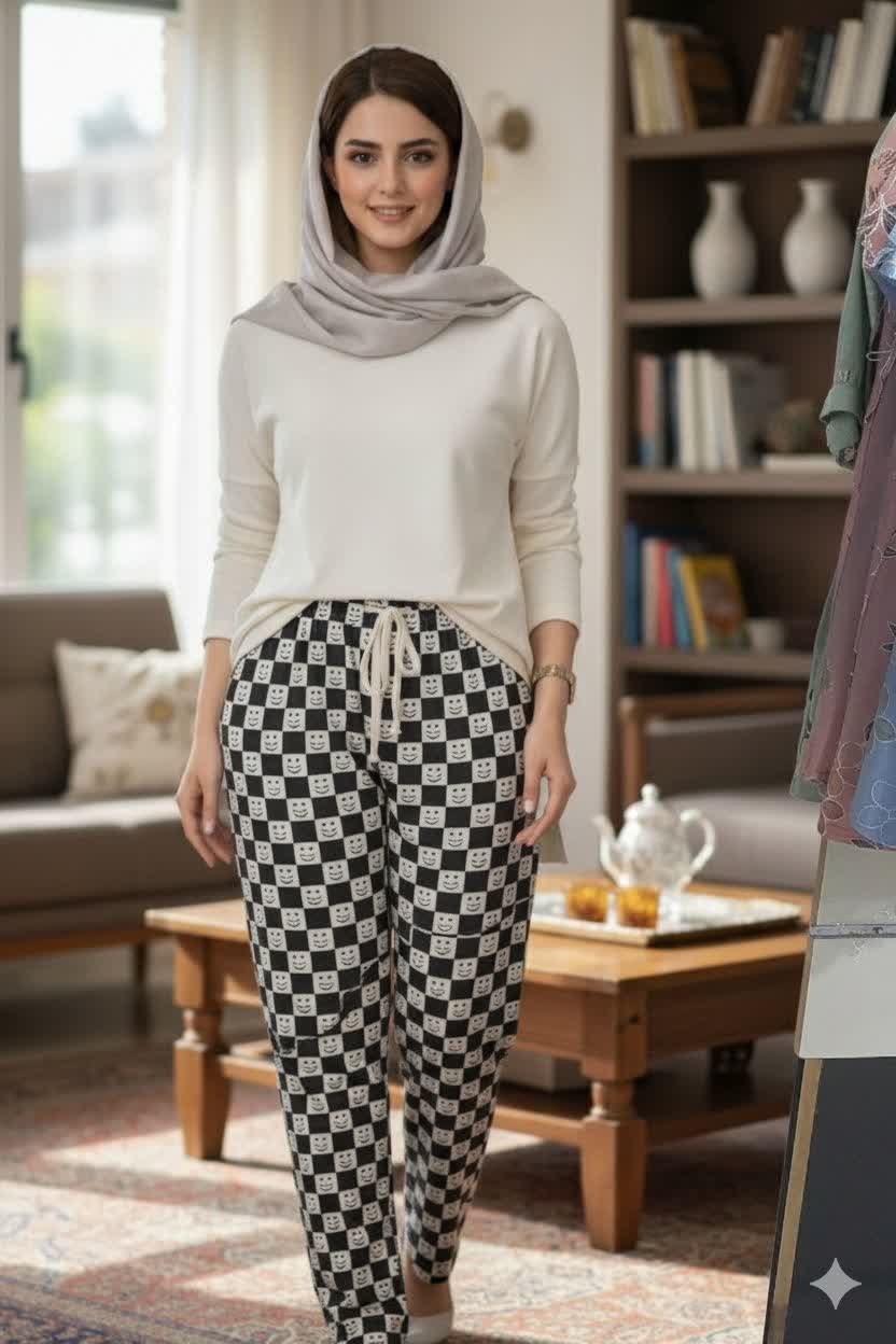 شلوار راحتی طرحدار با طرح خاص و جذاب، مناسب برای استفاده روزمره، خانه و بیرون. سبک، خوش‌فرم و بسیار نرم — انتخابی عالی برای خانم‌های خوش‌استایل