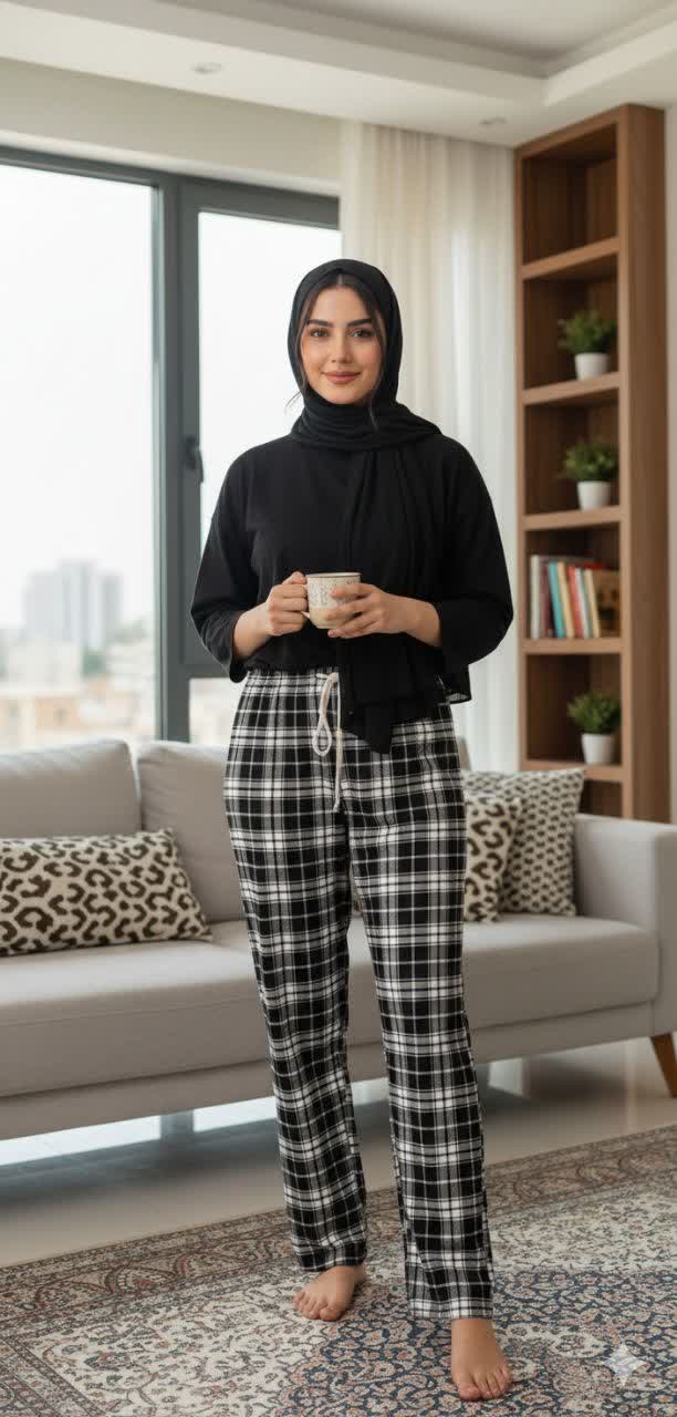 اگر به‌دنبال شلوار خانگی سبک، خوش‌دوخت و در عین حال مناسب برای بیرون هستید، این مدل شلوار ریون انتخابی عالی است. پارچه ریون به‌خاطر لطافت، کشسانی و تنفس‌پذیری بالا باعث راحتی کامل در طول روز می‌شود. طراحی خاص و رنگ‌بندی جذاب آن باعث شده بتوانید از این شلوار هم به عنوان شلوار بیرونی و هم در خانه استفاده کنید.