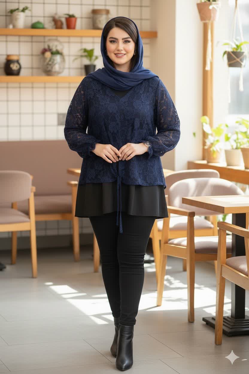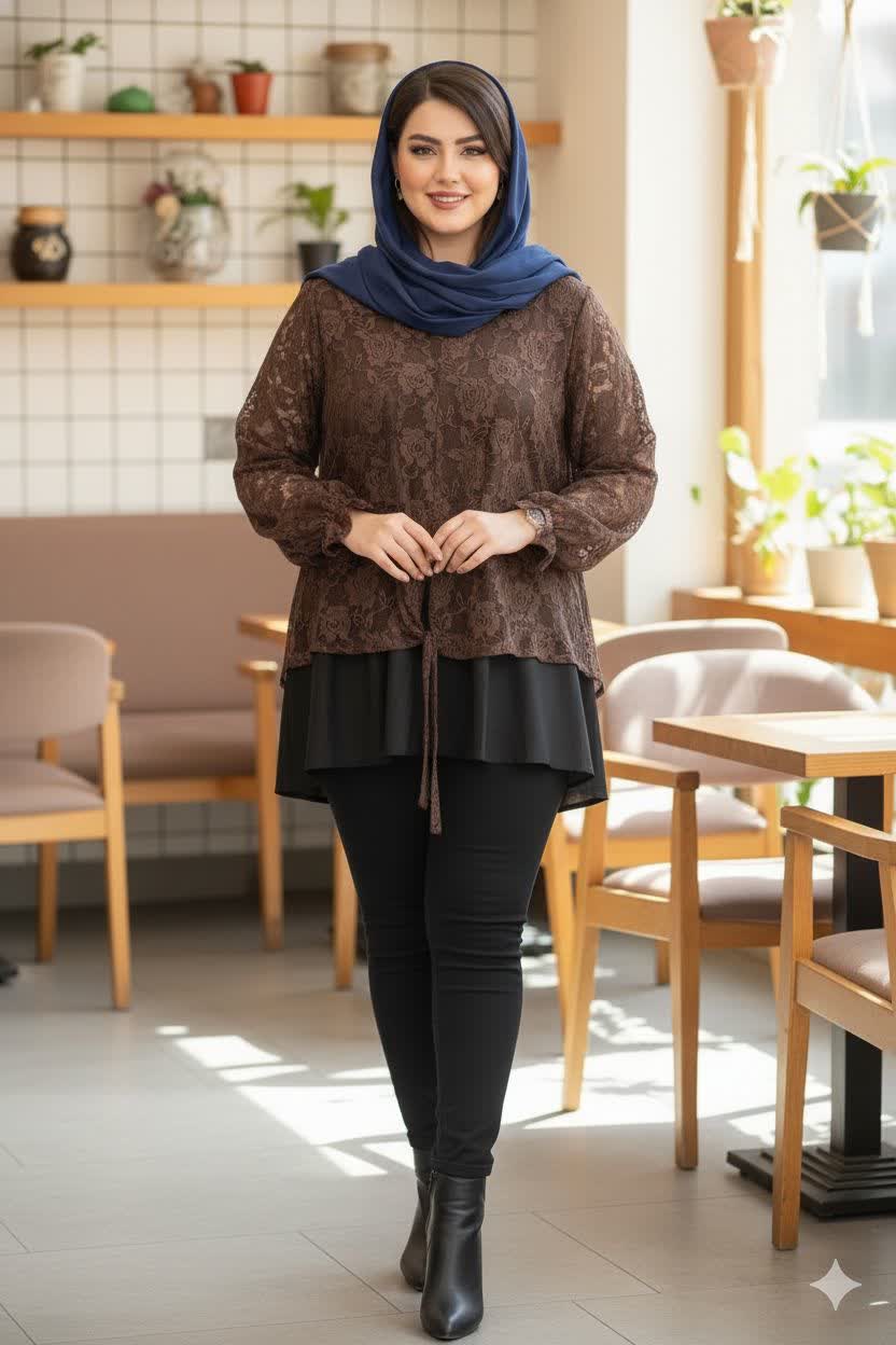 این مدل با طراحی خاص و ظریف ترکیبی از پارچهی تورکش طرحدار و لایه ی زیرین حریر مشکی است که جلوهای بسیار شیک و در عین حال سنگین به استایل شما میدهد