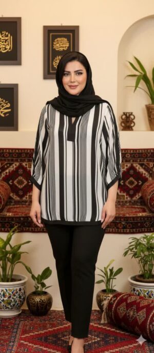 اندازه بلوز فری سایز کاملا کشی عرض دور سینه ( حداقل 120 – حداکثر 130 ) سانتی متر